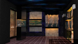 El proceso fue mas rápido en comparación con la primer sala que se diseñó. Pudimos encontrar muy pocas referencias sobre ideas para disear Acuarios, por lo que casi todo el proceso fue realizado de forma intuitiva. Lo que si sabíamos, y pudimos observar en otros proyectos, es que obscureciendo la sala, la atención de los visitantes se centra en las peceras, lo cual es el principal objetivo de una sala de este tipo.